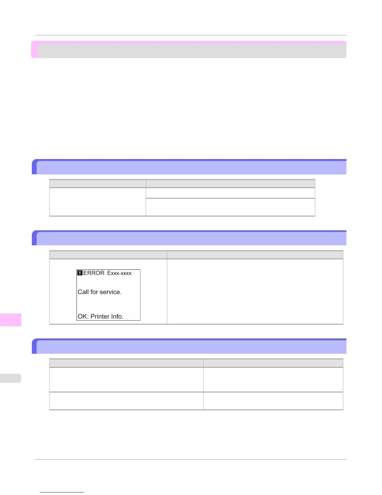 An error requiring service may have occurred. Write down the error code and message, turn off the printer, and con-