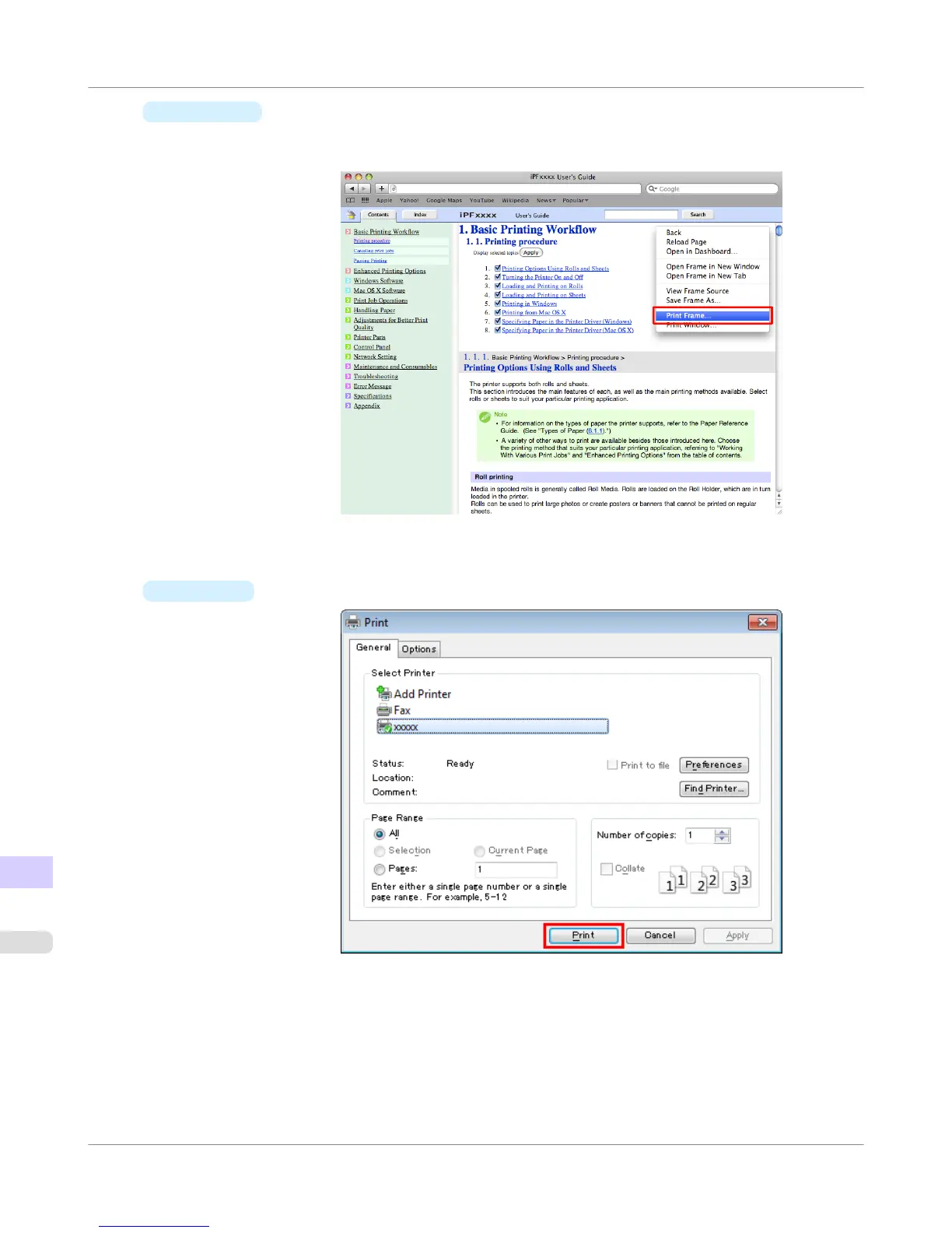 the Ctrl key. In the shortcut menu, click Print Frame to display the Print dialog box.