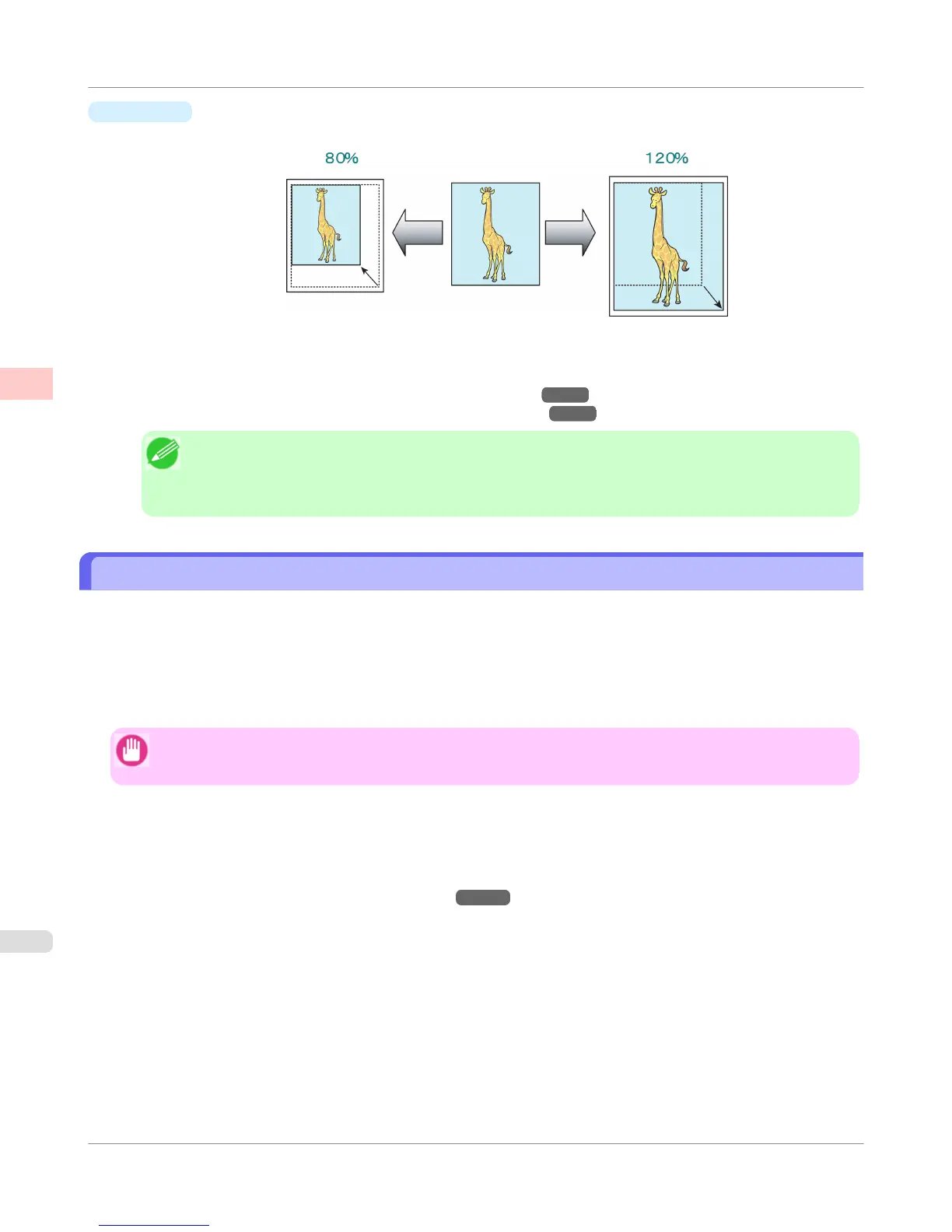 • In borderless printing, you cannot resize originals by entering a scaling value.