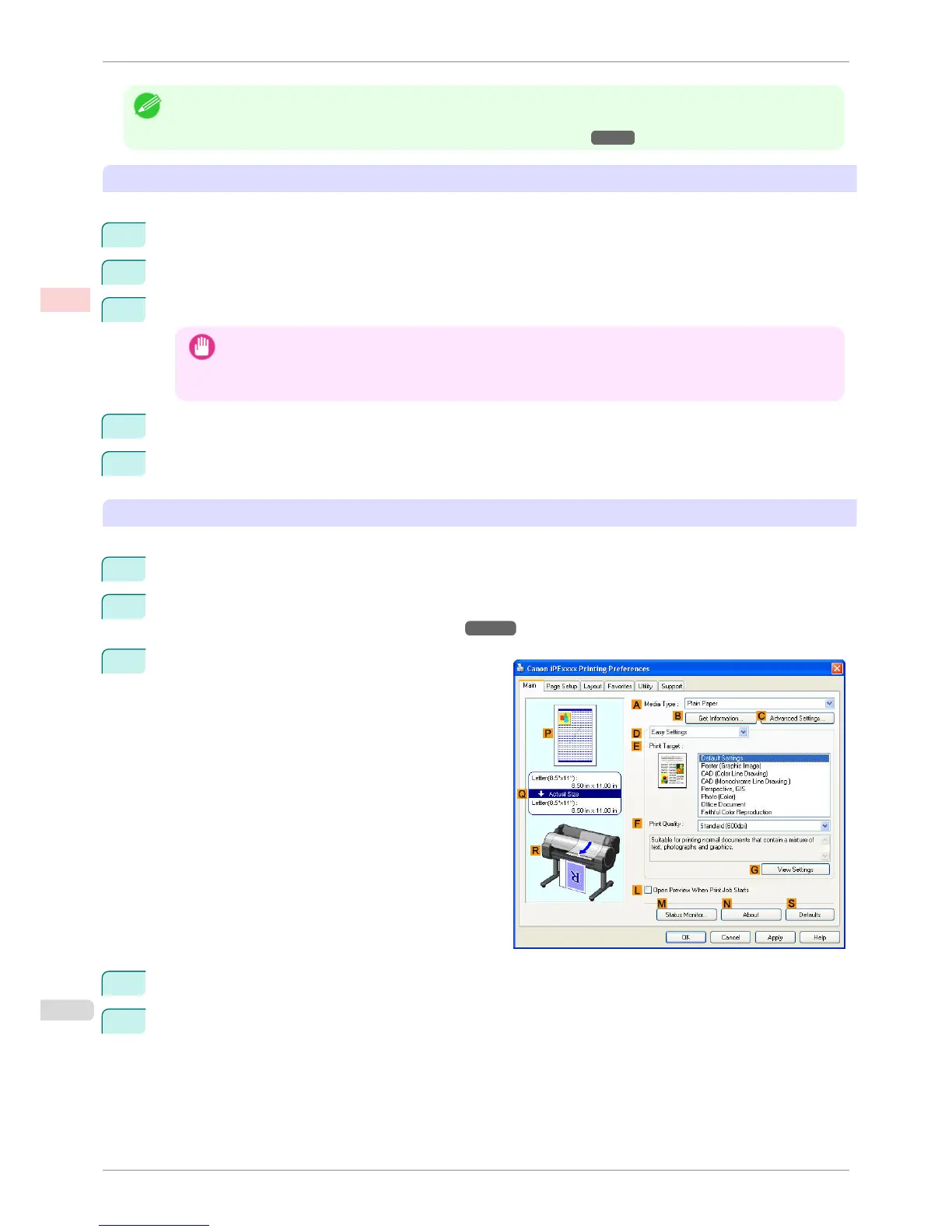 • Although you can even set Custom Size for the paper size, the maximum settable size is 3.2 m. The setting of Custom