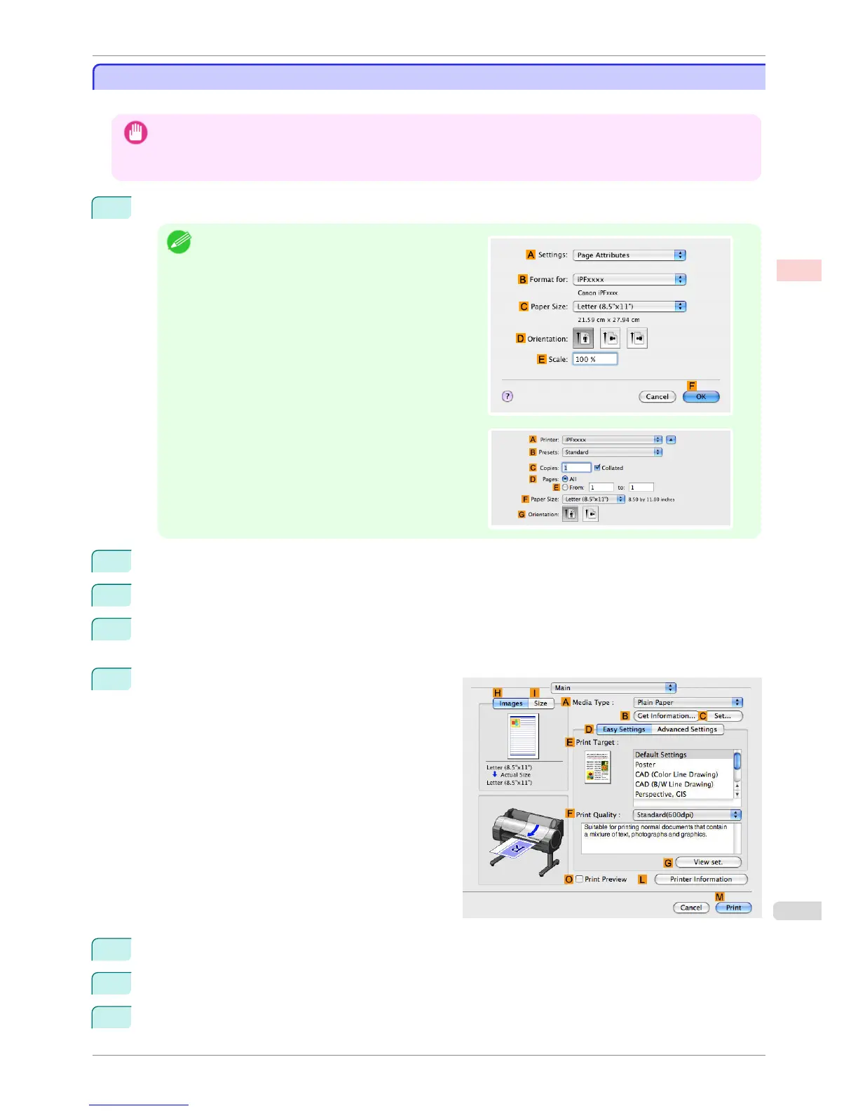 • During banner printing, settings for conserving paper, number of copies, borderless printing, enlargement or reduction,