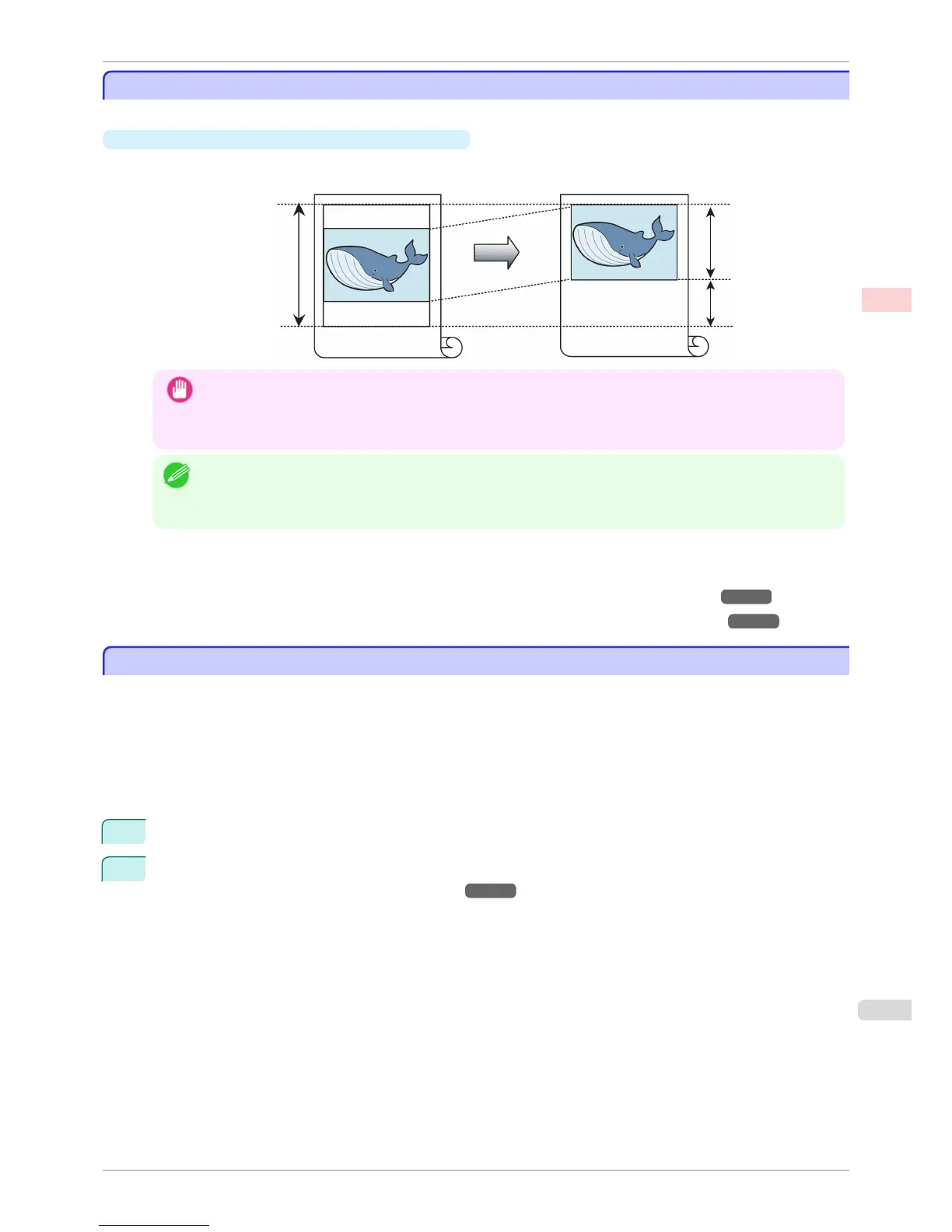 This topic describes how to conserve roll paper when printing originals that have a top and bottom margin, based