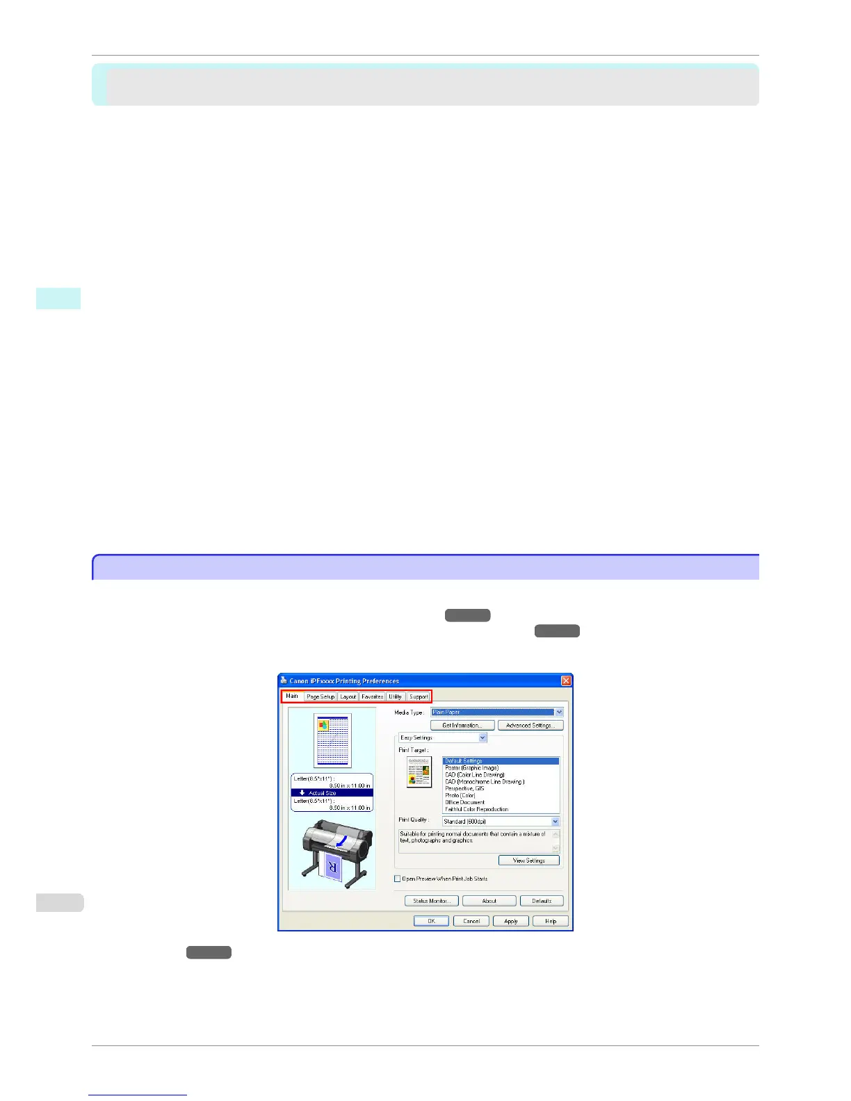 Easy Settings to specify basic print settings based on the printing application or Advanced Settings to com-
