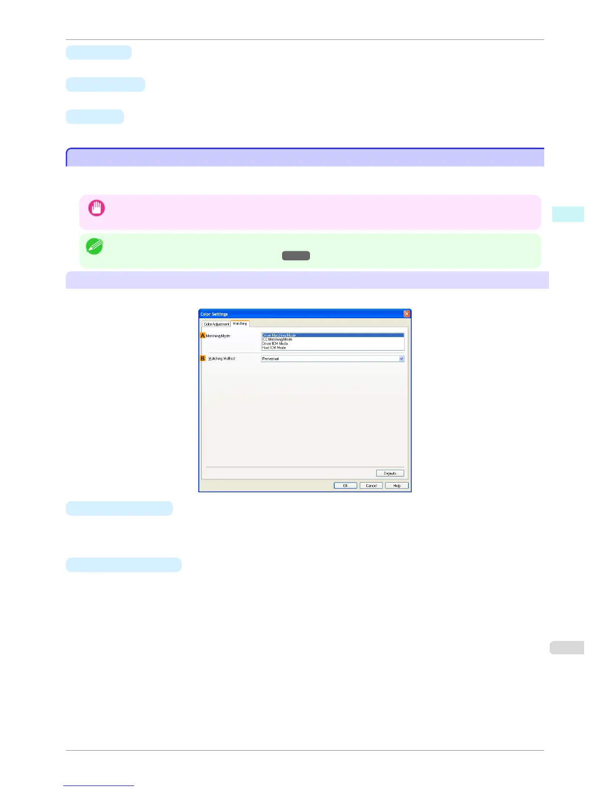 • If No color correction is selected under Color Mode, the Matching sheet is not displayed.