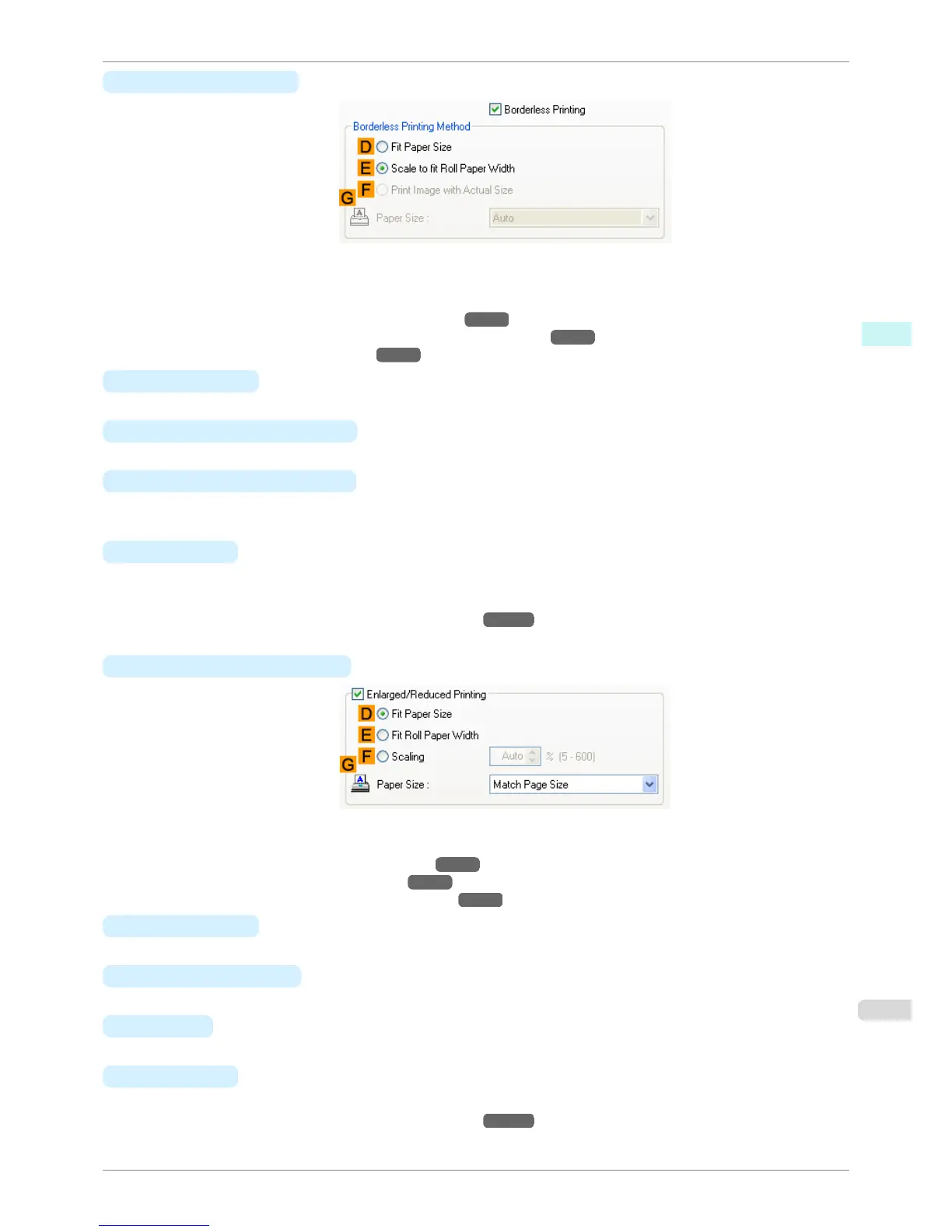 Borderless printing is available if roll paper is selected in the L Paper Source list. Choose from the following