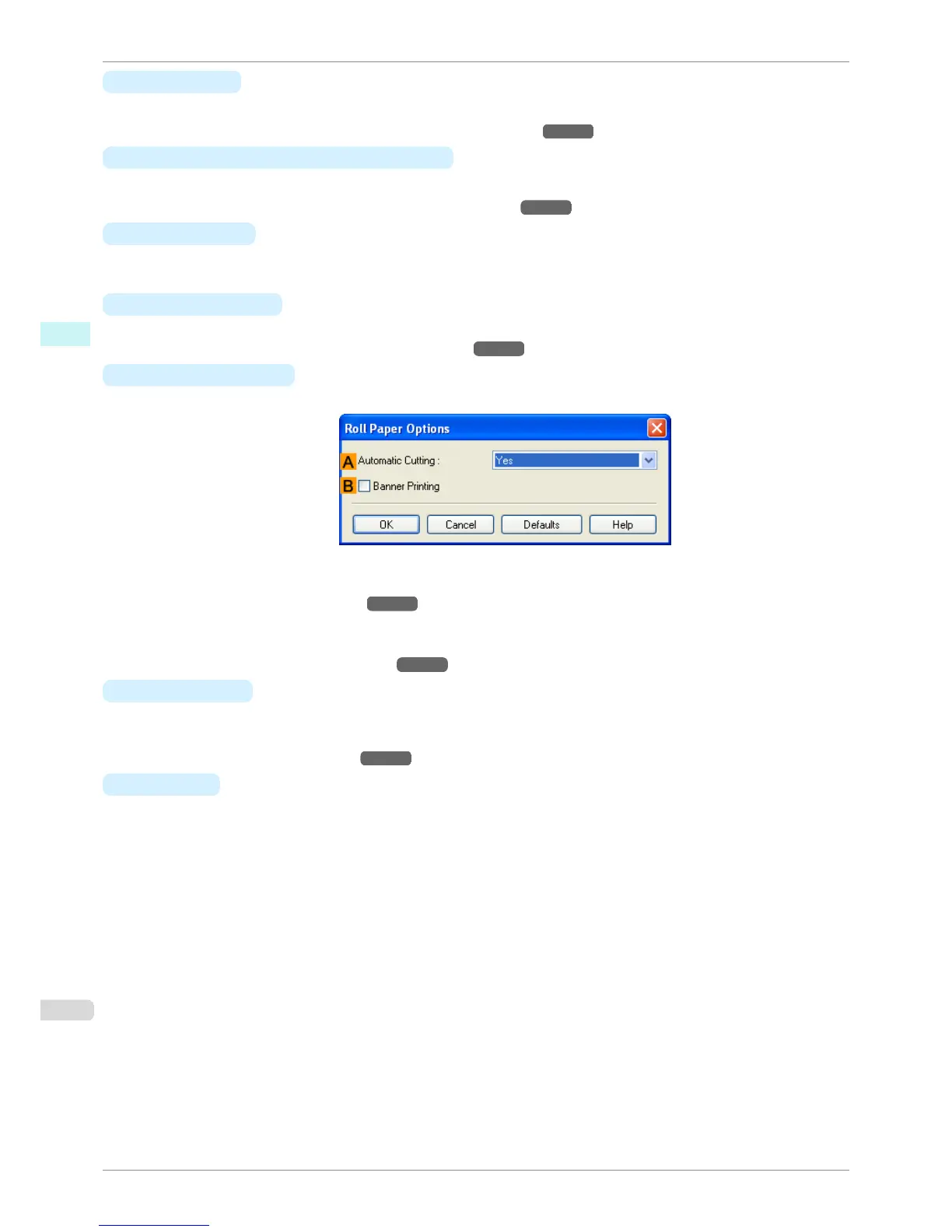 Complete optional roll paper settings. Click to display the Roll Paper Options dialog box.