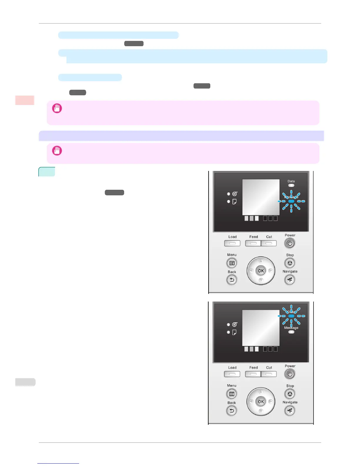 Load paper. (See "Loading and Printing on Rolls.") →P.19 (See "Loading and Printing on Sheets.")