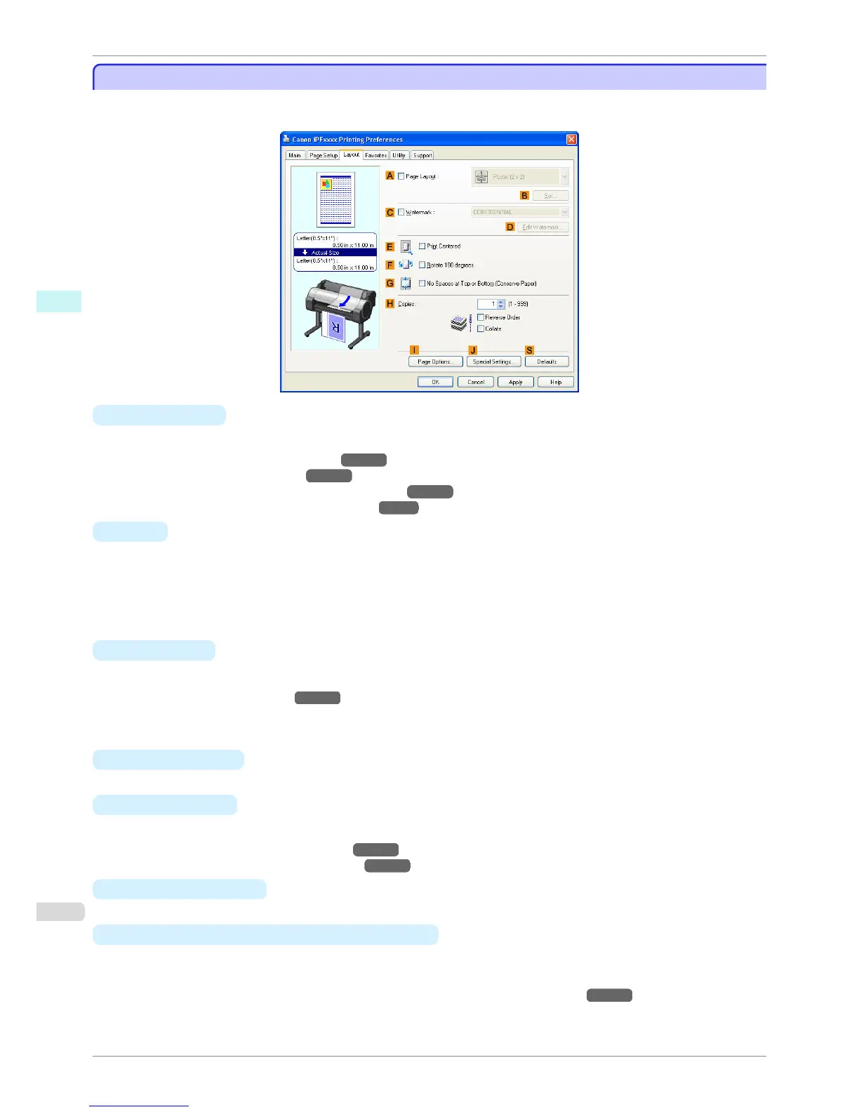 The following settings are available on the Layout sheet. For details on settings items, refer to the printer driver