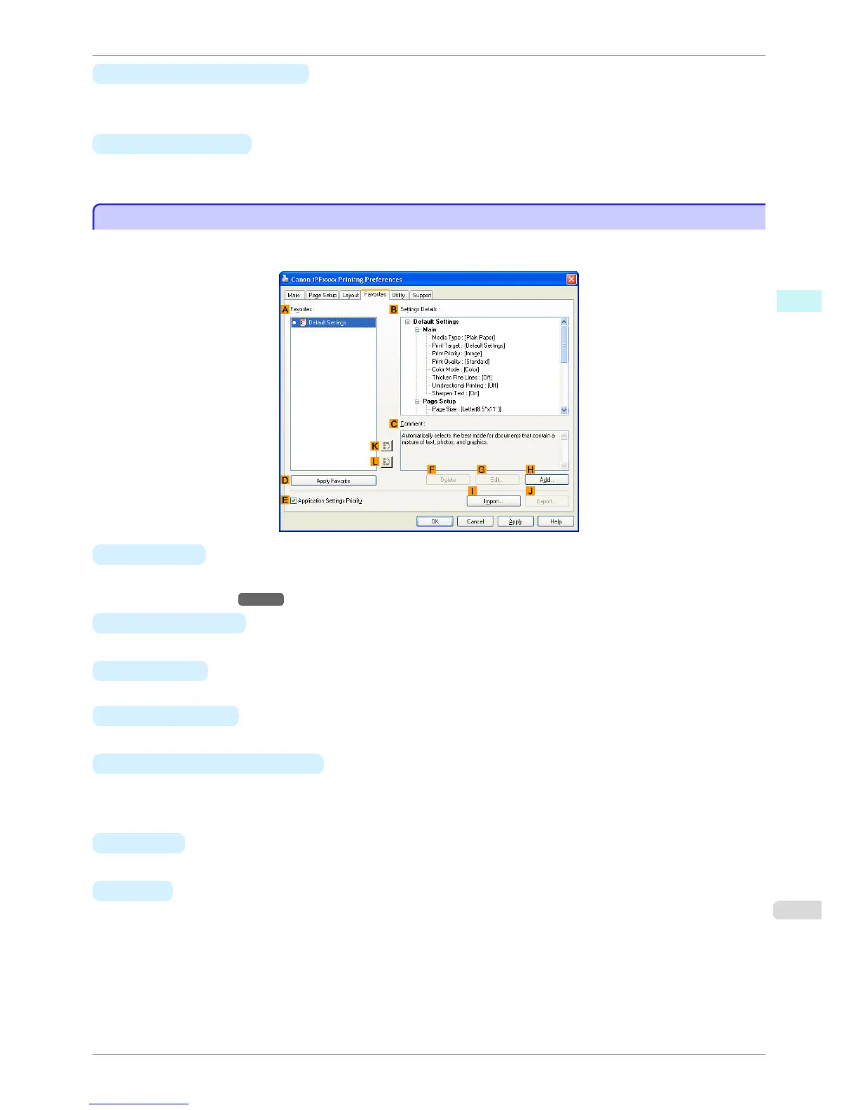selected in the A Favorites, when clicking D Apply Favorite. For details on the settings items used in prefer-