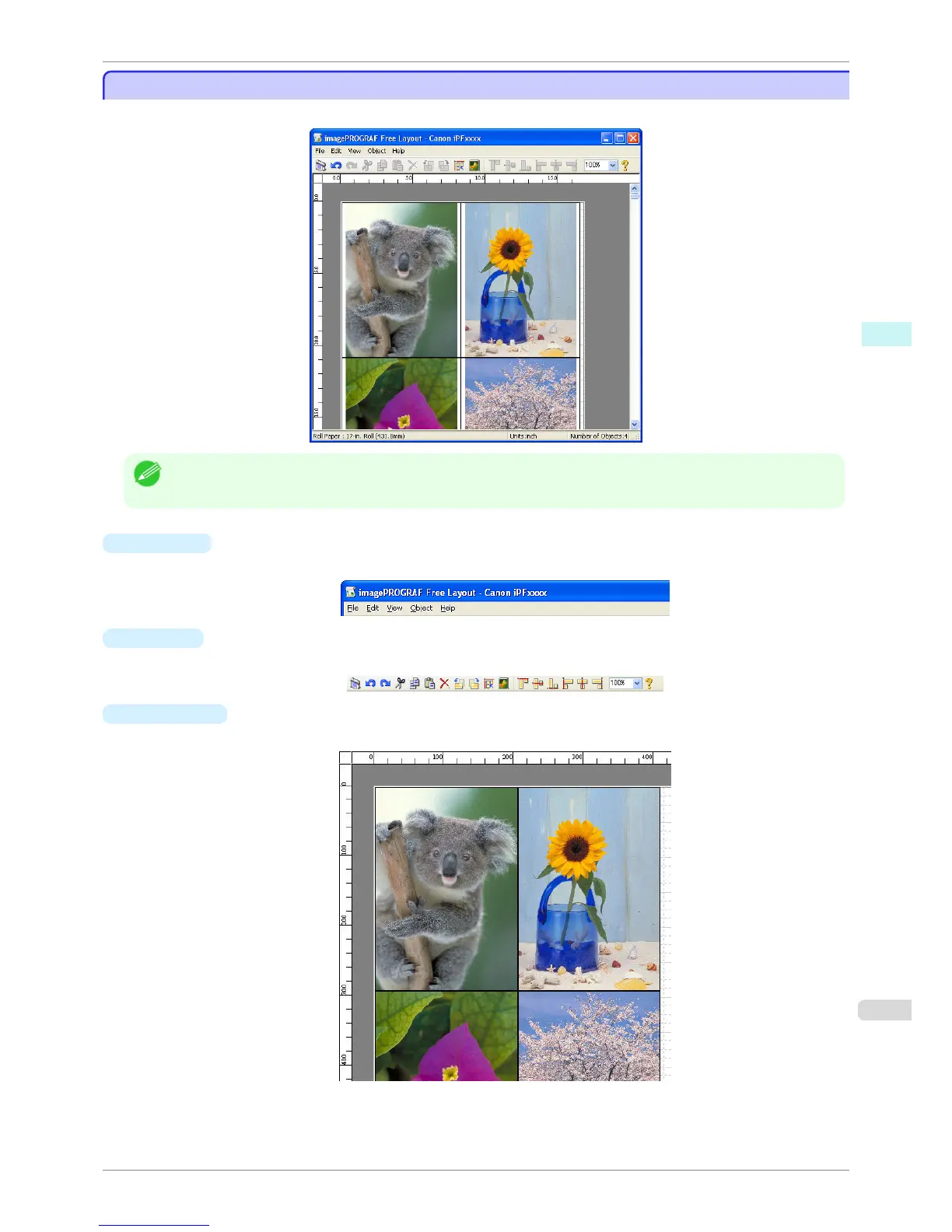 The Free Layout main window consists of the menu and tool bars, layout area and status bar.