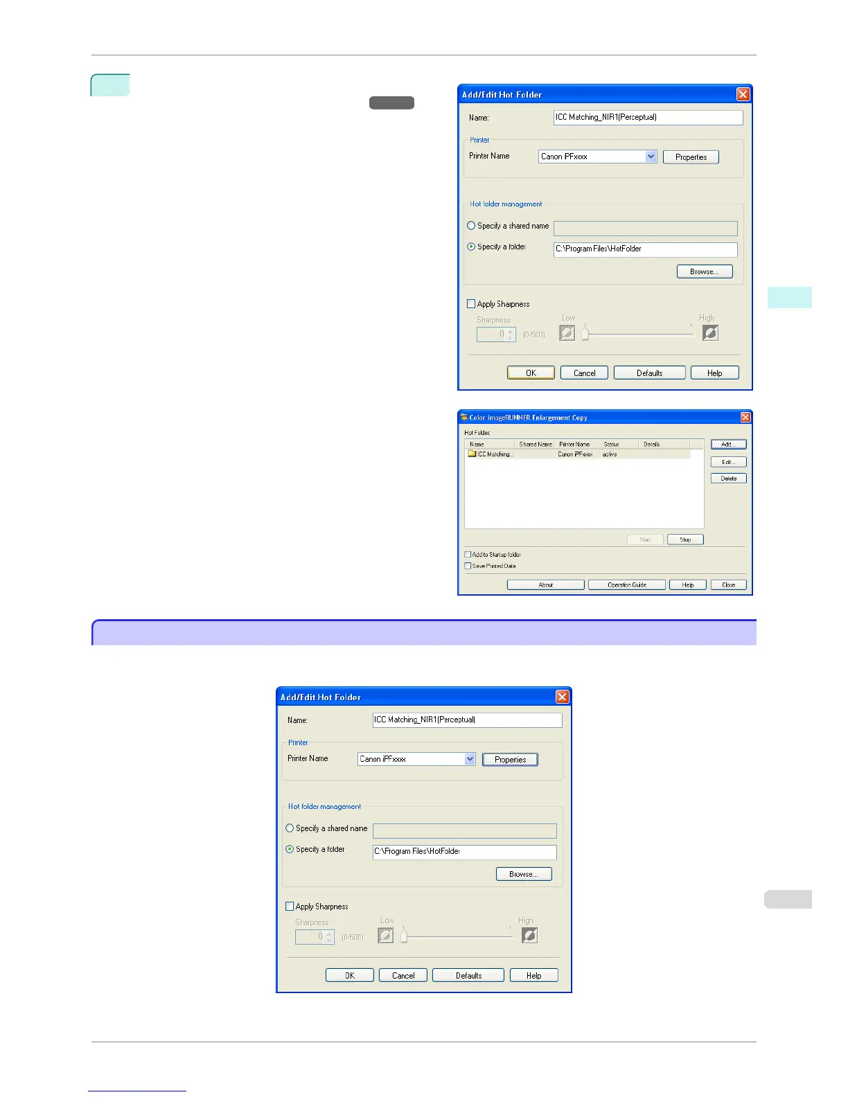 The printer driver opens when you click the Properties button in the Add/Edit Hot Folder dialog box. The printer