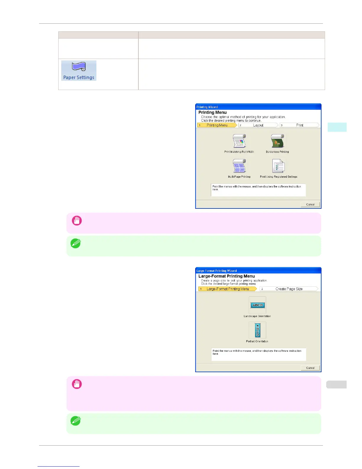 • If you want to change the display to another file or application while the Large-Format Printing Wizard is