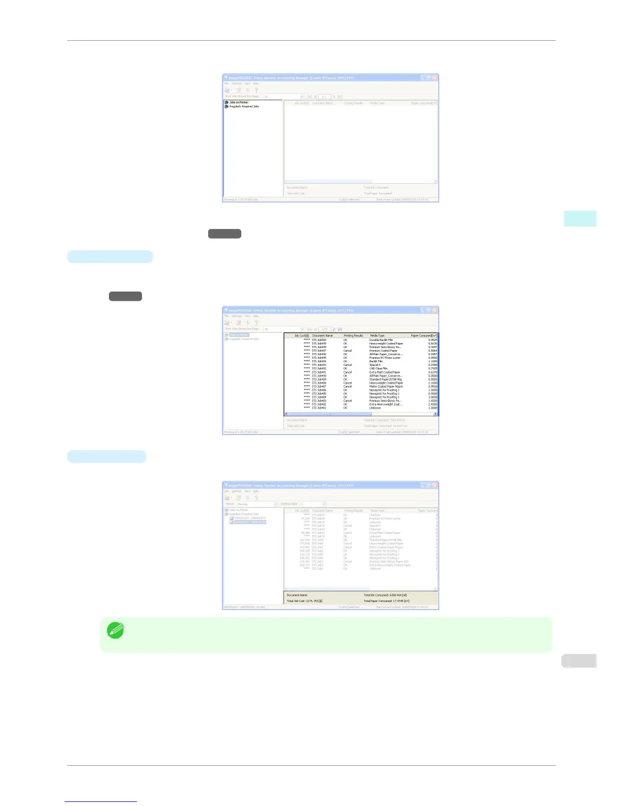 Display a list of jobs within the printer or of jobs collected periodically. For details, refer to Job List