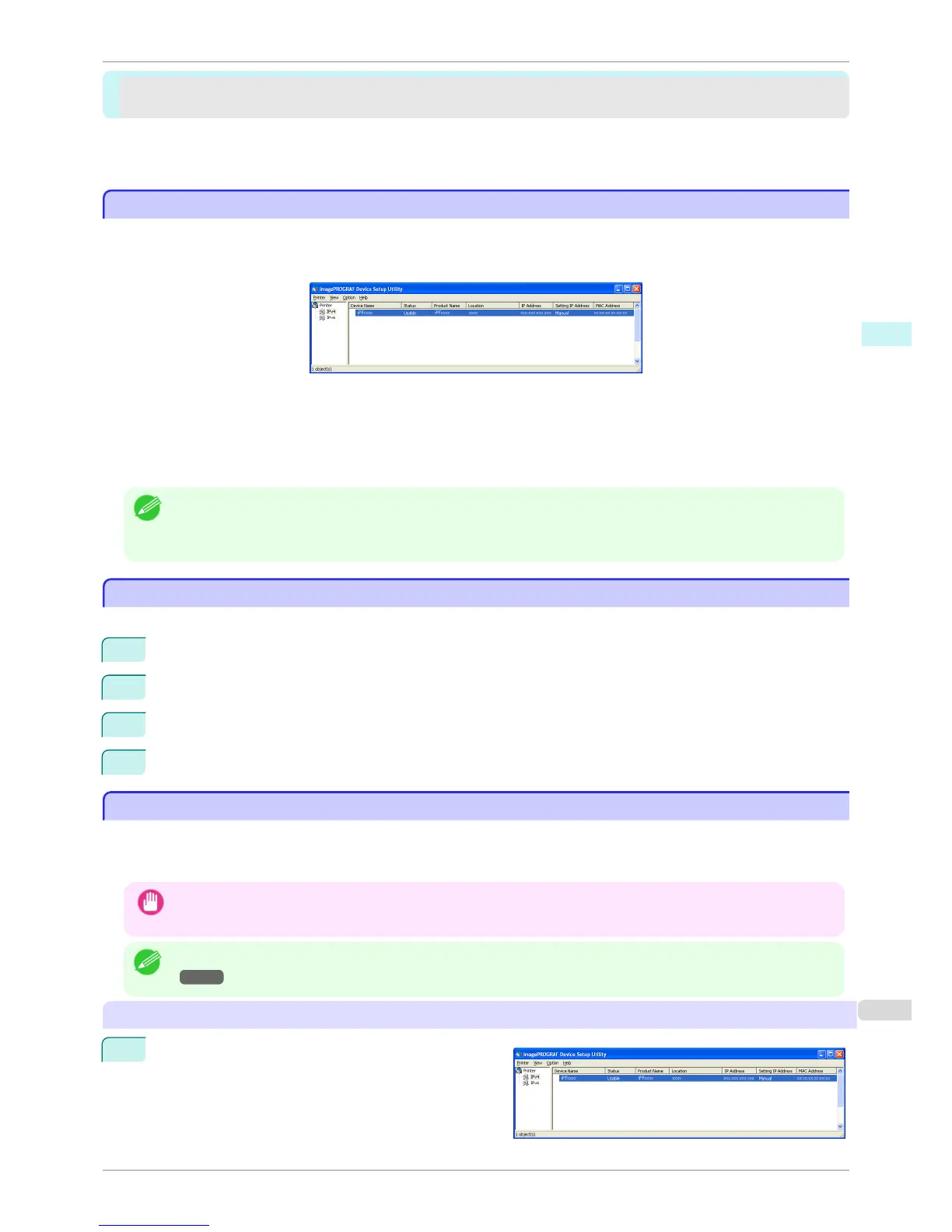 • For instructions on installing imagePROGRAF Device Setup Utility, see "Installing imagePROGRAF Device Setup Utility."