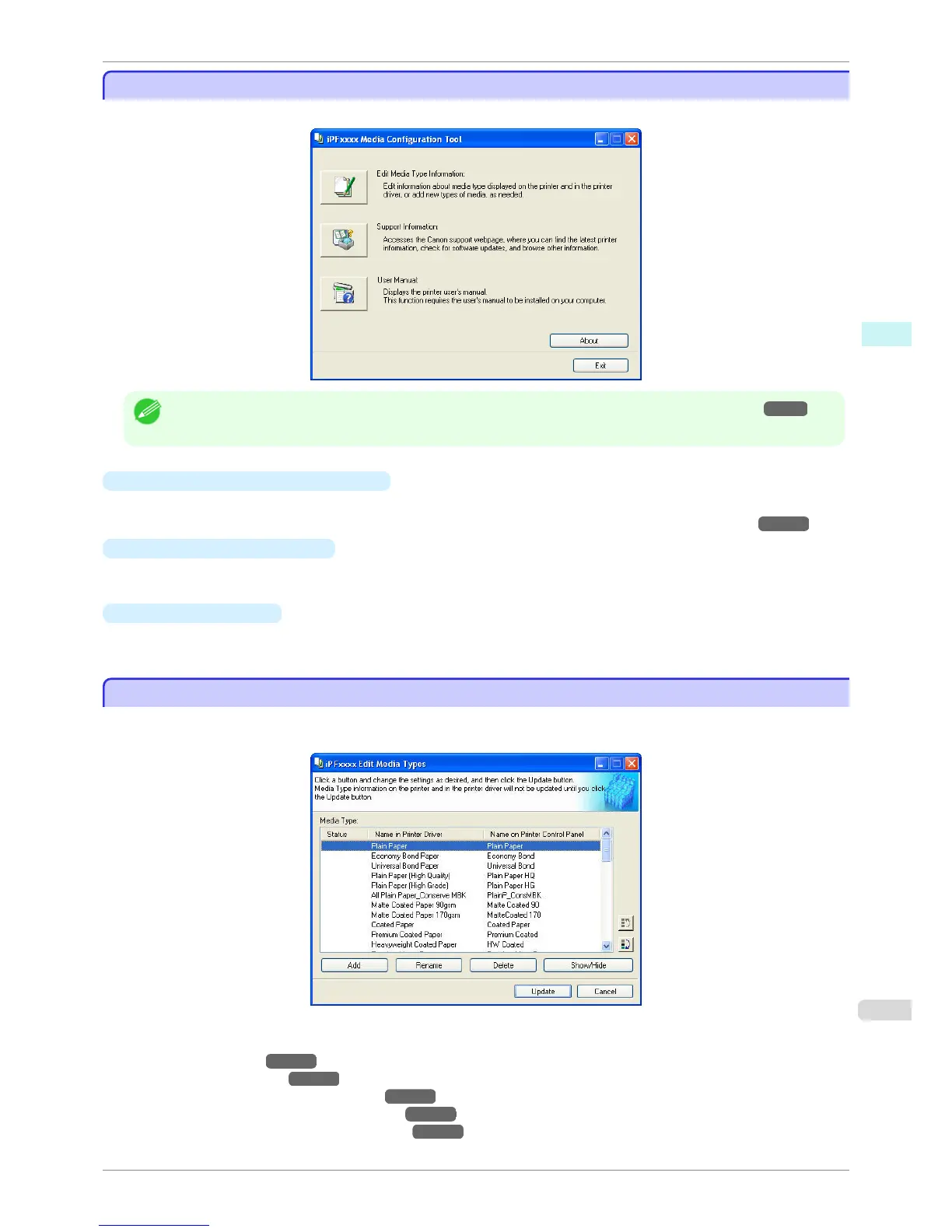 • For the step to open the Media Configuration Tool main window, see "Starting the Media Configuration Tool." →P.280