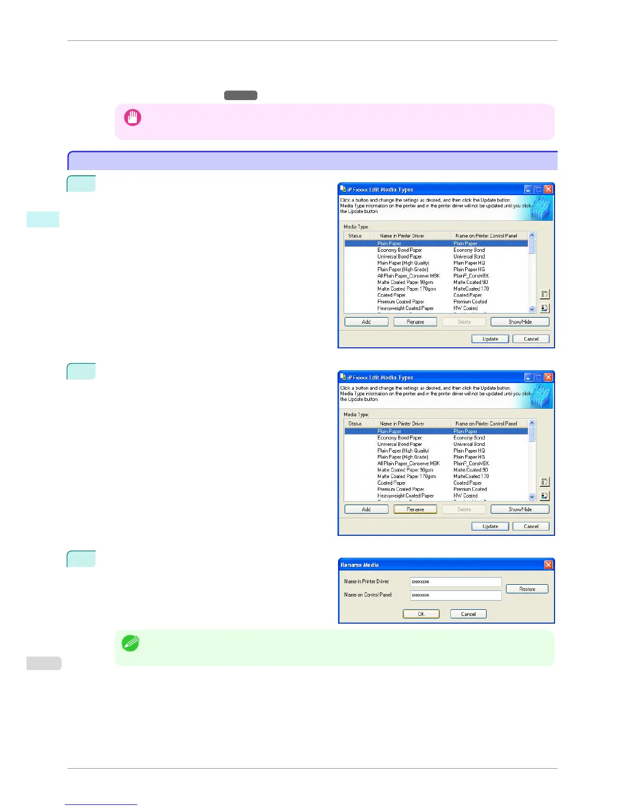 Edit the names in Name in Printer Driver and Name
