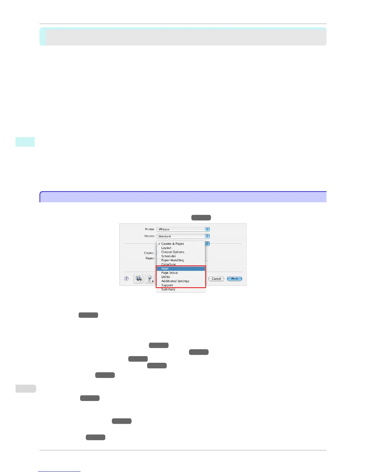 For information on the Mac OS X printer driver settings, refer to the following topics.