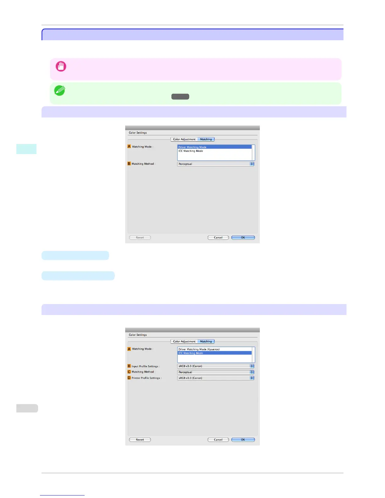 • To display the Matching pane, on the Main pane click Color Settings in Color Mode in Advanced Settings, and then
