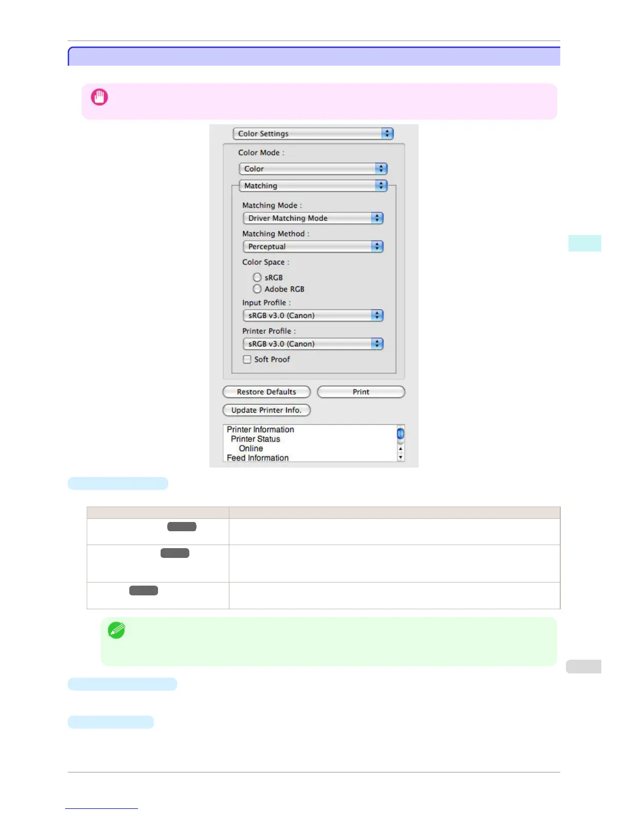 Driver Matching Mode →P.324 Enables printing of optimal color tones using a driver specific color profile. You should normally