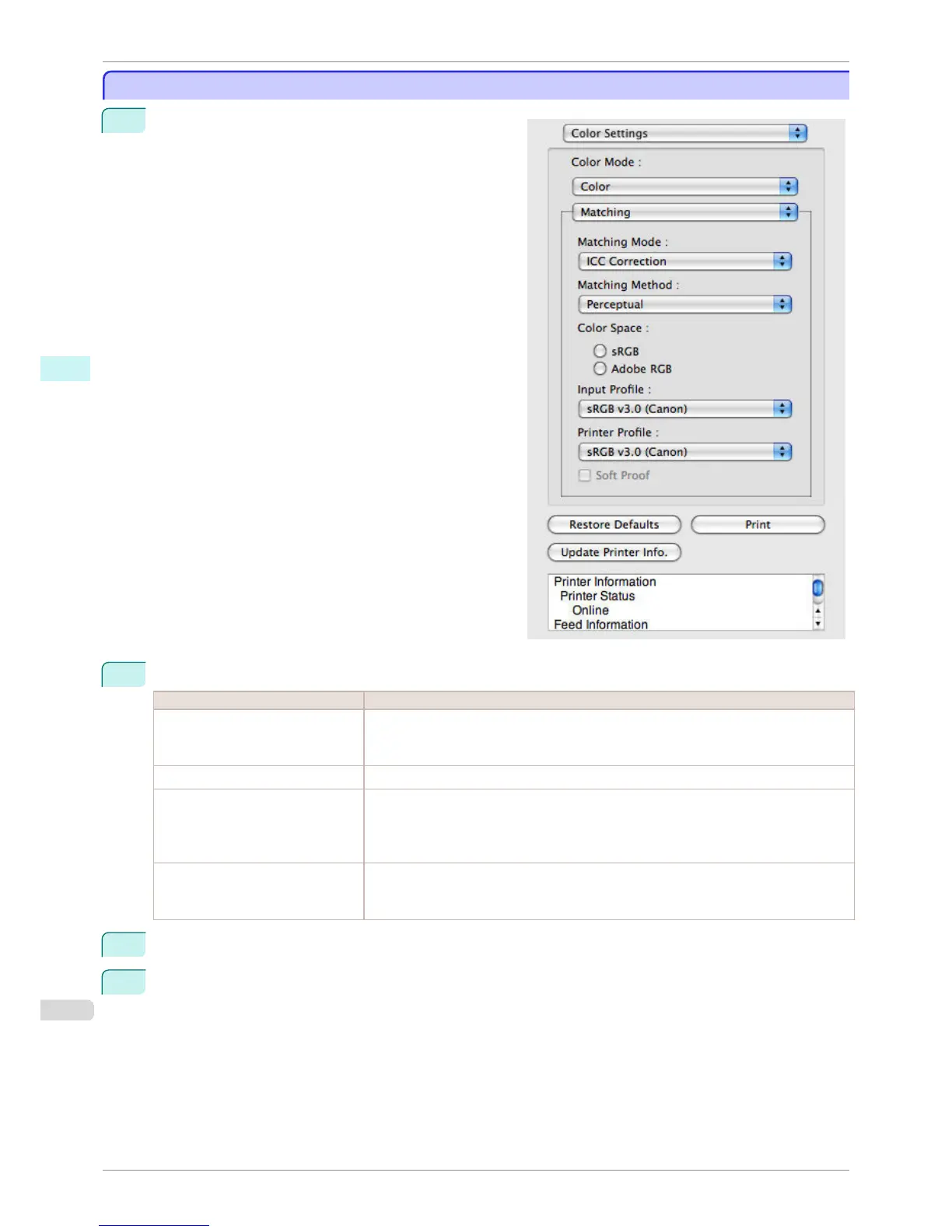 Perceptual Color-matching optimized for printing typical photos attractively. Smooth gradation is a fea-