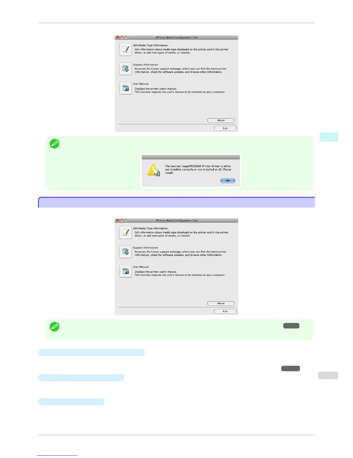 • If a compatible printer driver is not installed, the Media Configuration Tool will not start. If you attempt to start the Media
