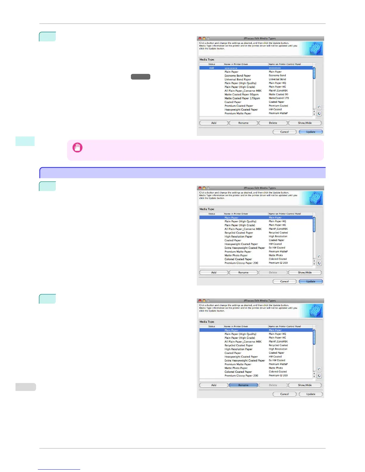 • Be sure to click the Update button. If you do not, your changes will not be applied to the printer and printer