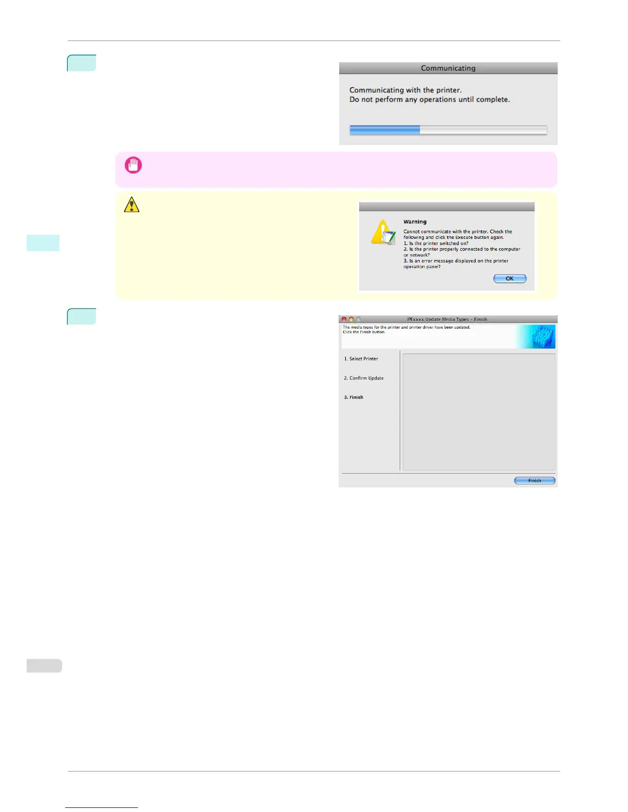 • Do not attempt to print or turn the printer off while the program is communicating with the printer.