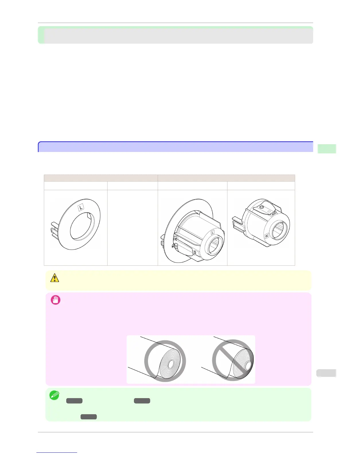 • For details on supported sizes and types of rolls, see Paper Sizes or the Paper Reference Guide. (See "Paper Sizes.")