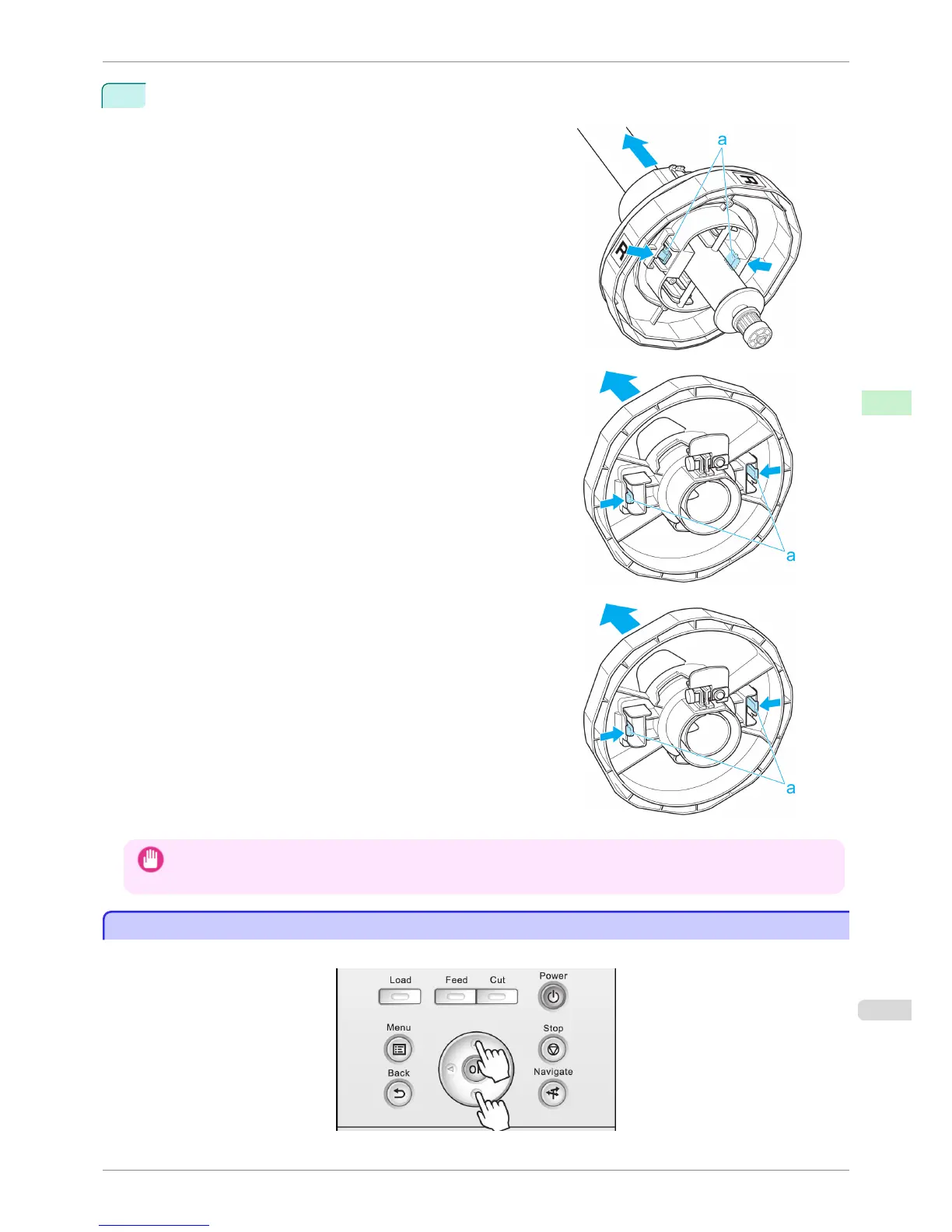 After a roll has been advanced, you can press the Feed button to feed or retract the roll with the ▲ and ▼ buttons.