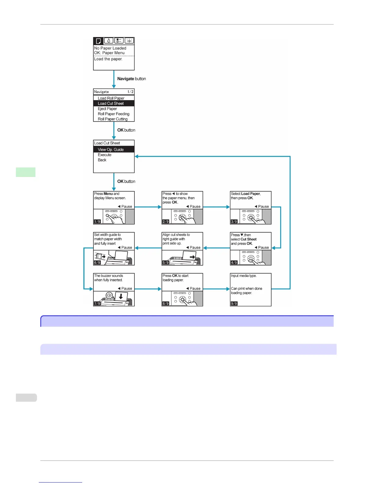 In the case of actions the printer cannot detect, instruction screens are switched every four seconds, and the se-