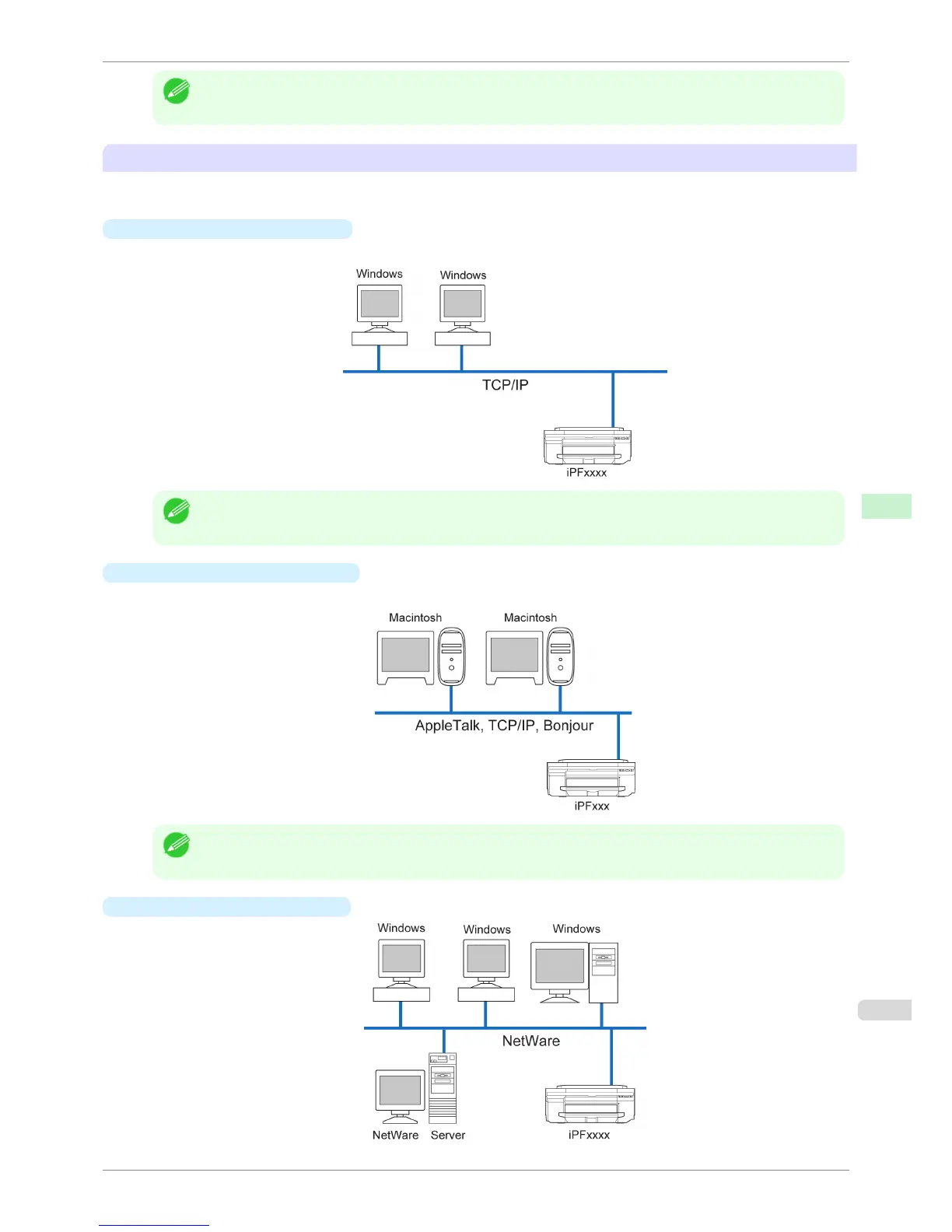 In Macintosh networks, print over AppleTalk (EtherTalk) or TCP/IP, using Bonjour (Zeroconf) functions.