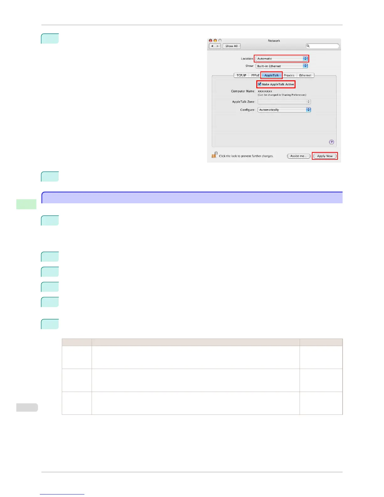 Refer to the AppleTalk Settings Items table to complete the settings.