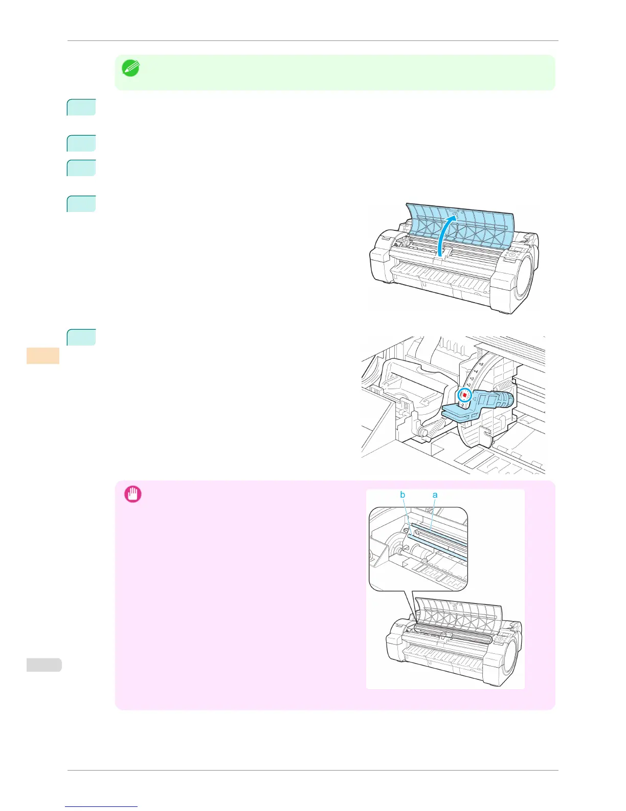 Do not touch the Linear Scale (a) or Carriage Shaft (b).