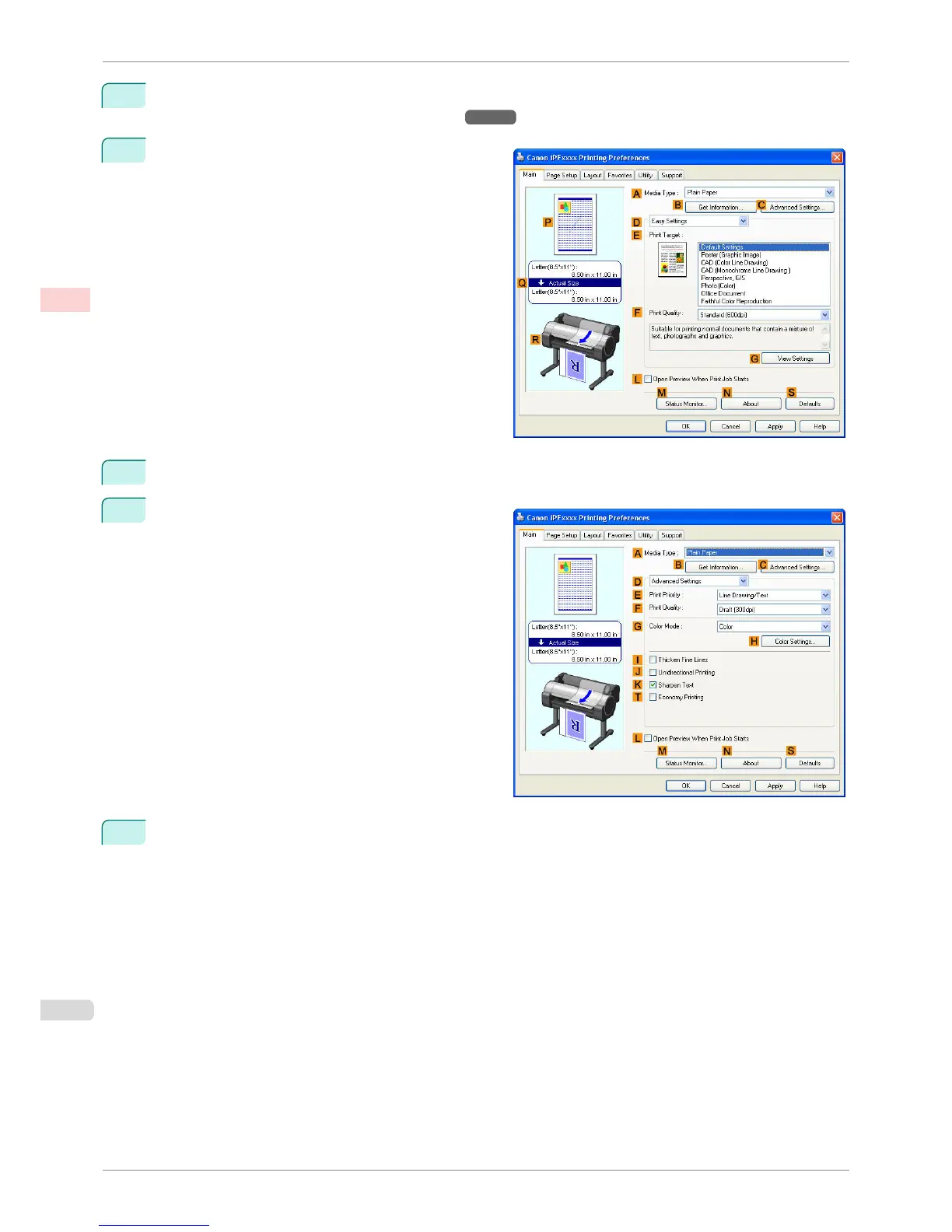 Select the printer in the dialog box, and then display the printer driver dialog box.(See "Accessing the Print-