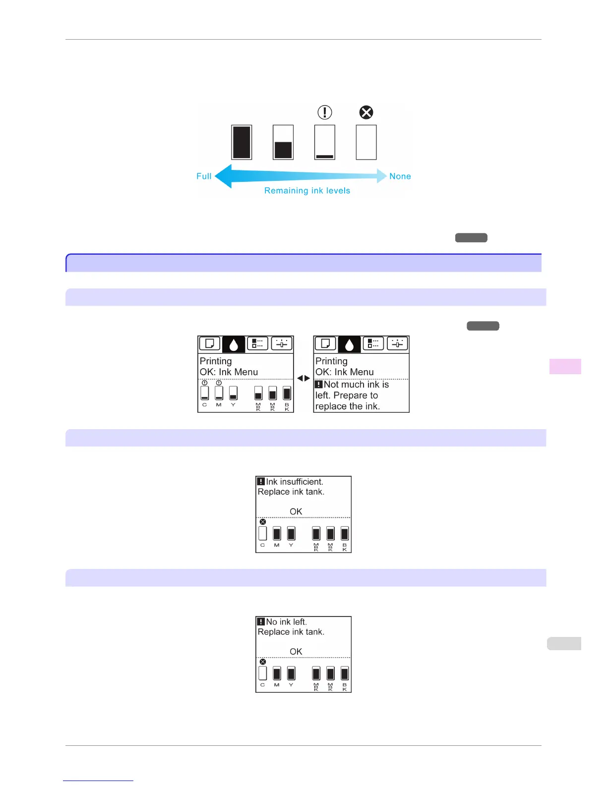 ing, check the remaining levels and replace Ink Tank as needed. (See "Replacing Ink Tanks.") →P.518