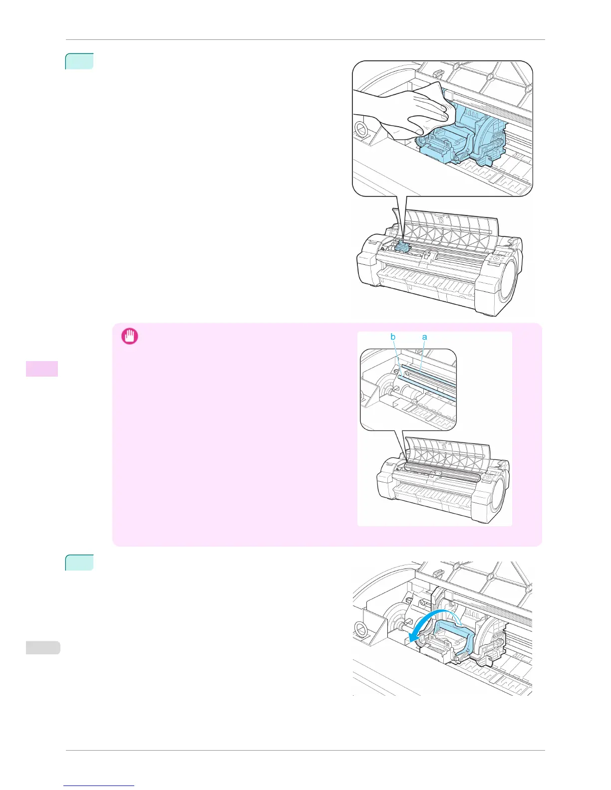 Do not touch the Linear Scale (a) or Carriage Shaft (b).