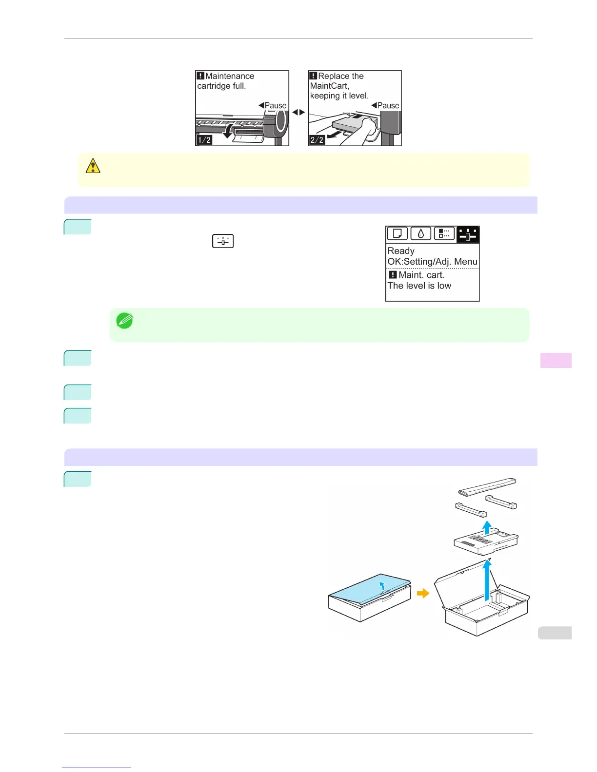 for Maintenance Cartridge replacement. Follow the instructions in Replace the Maintenance Cartridge.