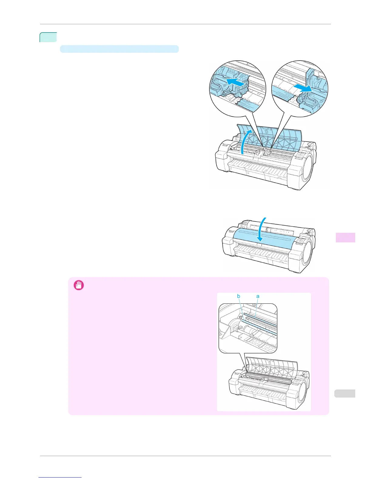 Do not touch the Linear Scale (a) or Carriage Shaft (b).