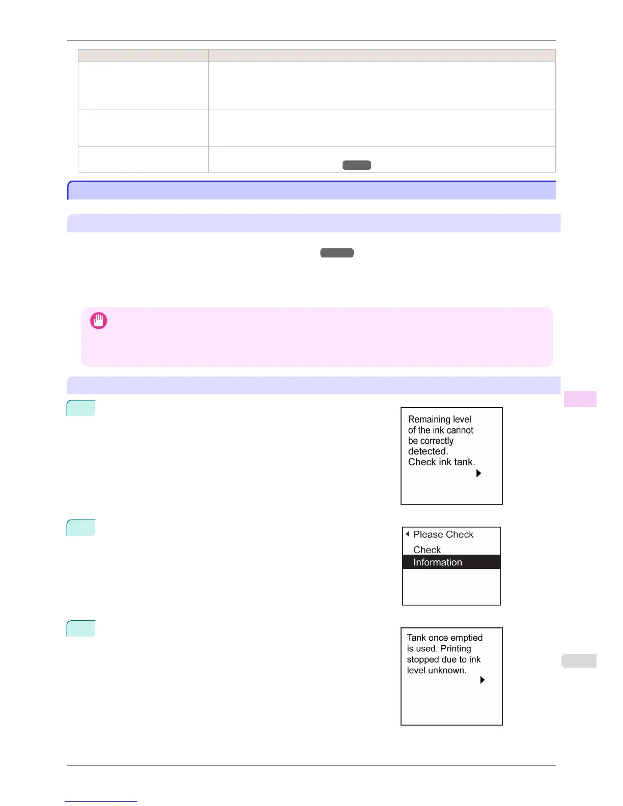 • After ink level detection has been released, this function cannot be reactivated for currently loaded Ink Tank. To use ink