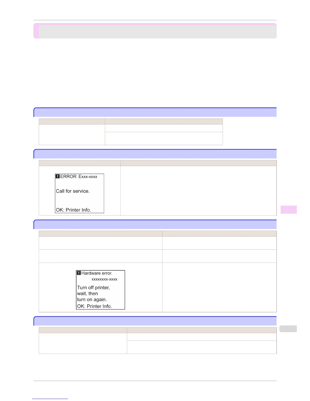 An error requiring service may have occurred. Turn off the printer and wait at least three seconds before restor-