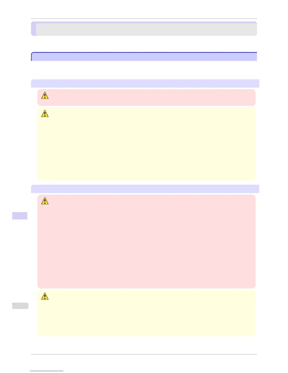 Follow the warnings and precautions below to use the printer safely. Do not perform any operations or procedures