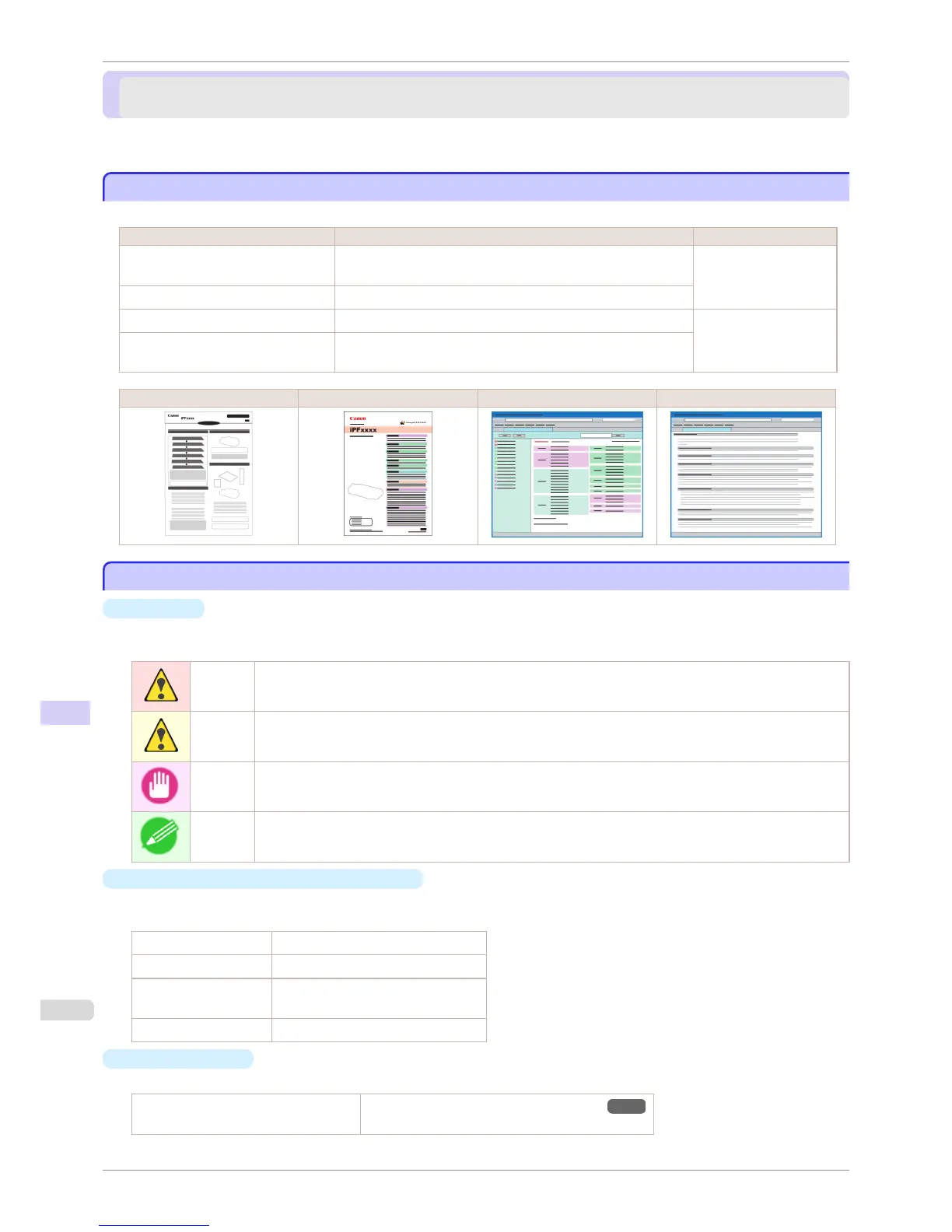 Cross-reference in the same user manual Example: see "Turning the Printer On and Off." →P.17