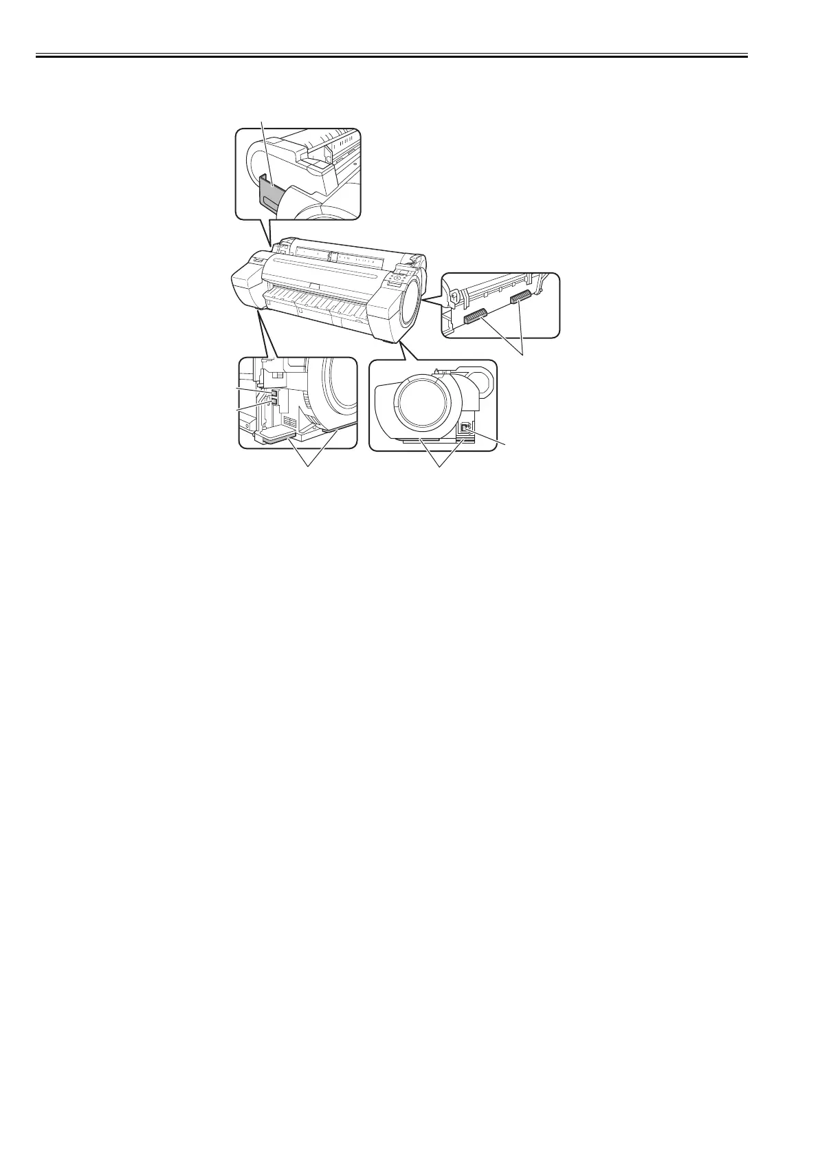 Three carrying handles provided at the left, right, and back allows three persons to carry the printer.