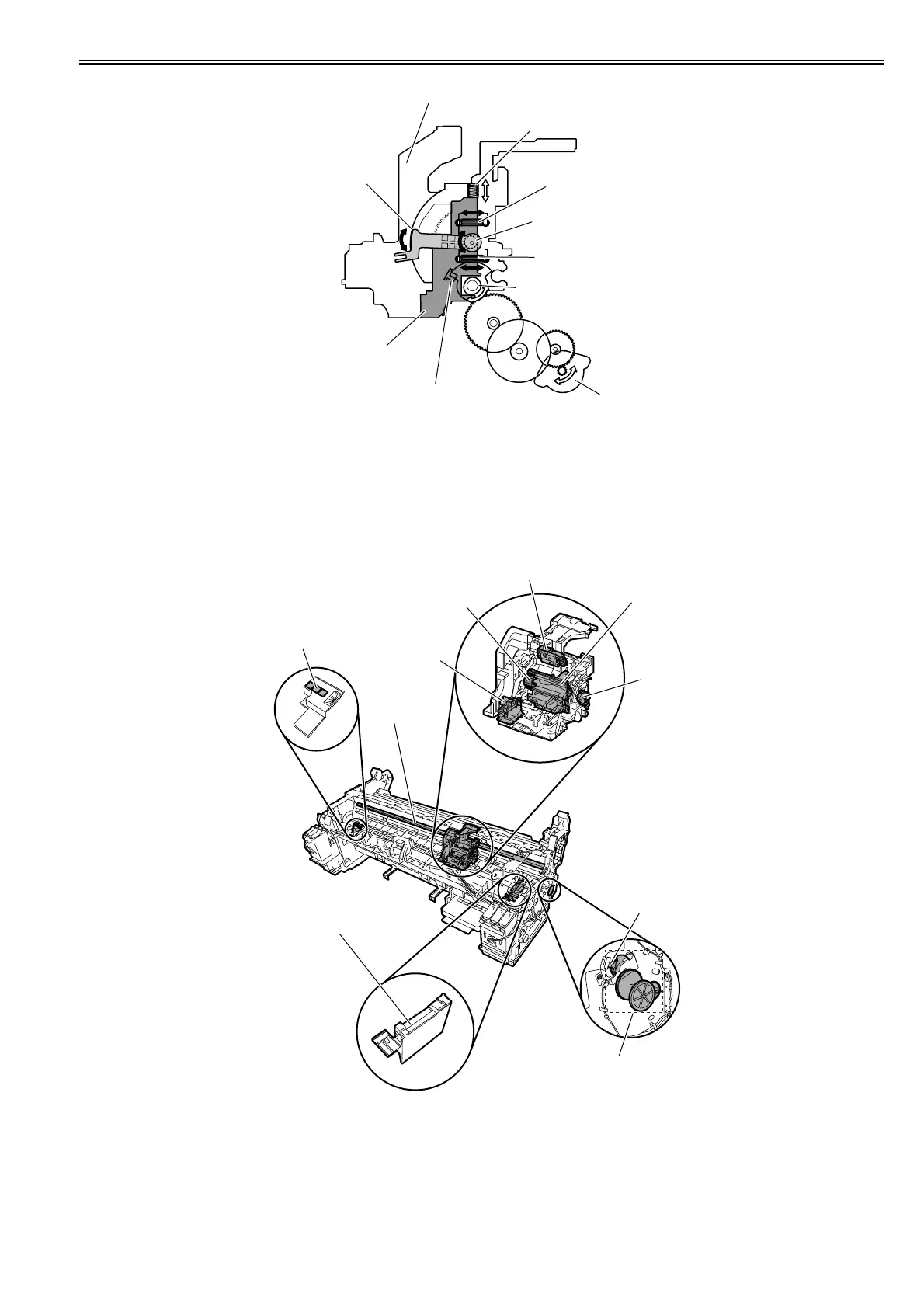 The lift motor is driven to rotate the carriage height changing cam within the carriage, in sync with which the lift cams on both sides of the carriage move the head
