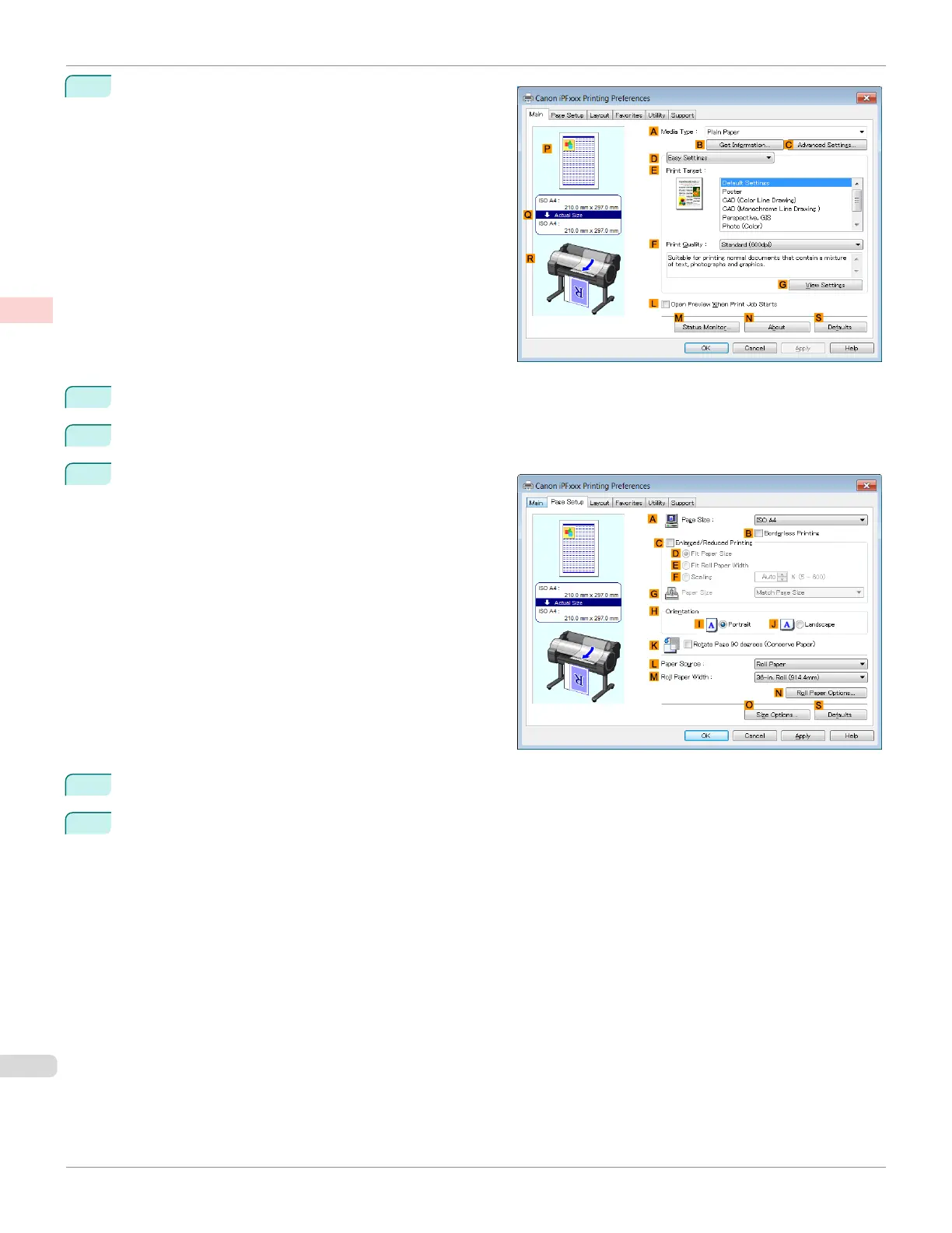 In A Page Size, click the size of the original as specified in the application. In this case, click ISO A2.