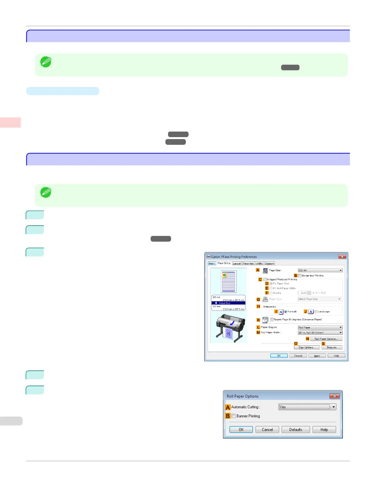 This topic describes how to cut roll paper automatically after printing (using the auto cut function), as well as how to
