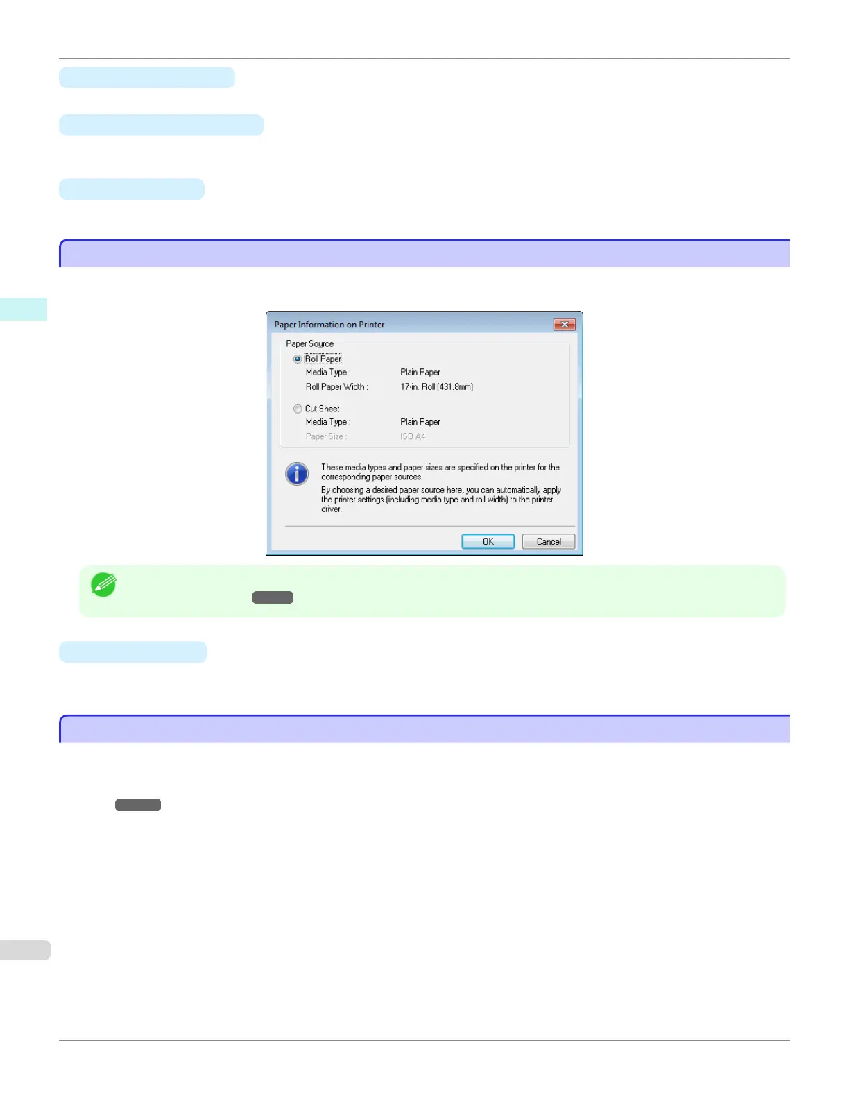 On the Paper Information on Printer dialog box, you can obtain information on the paper in the printer and configure