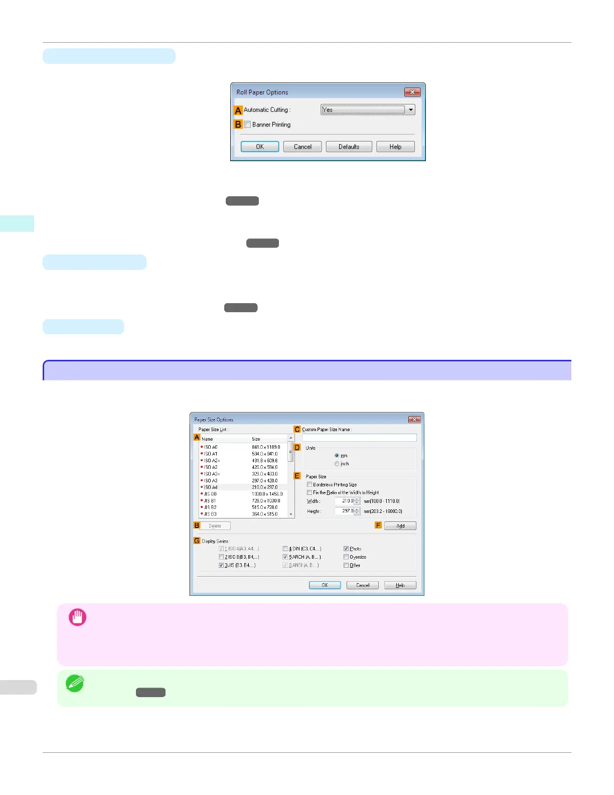 • You cannot create any arbitrary roll paper width as a Custom Paper Size.