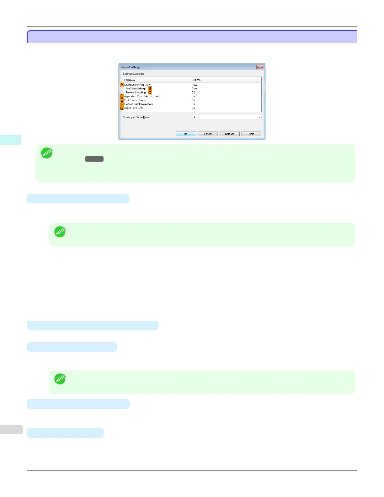 If the printing results are not as you expected, you can change how printing is processed in the Special Settings dia-