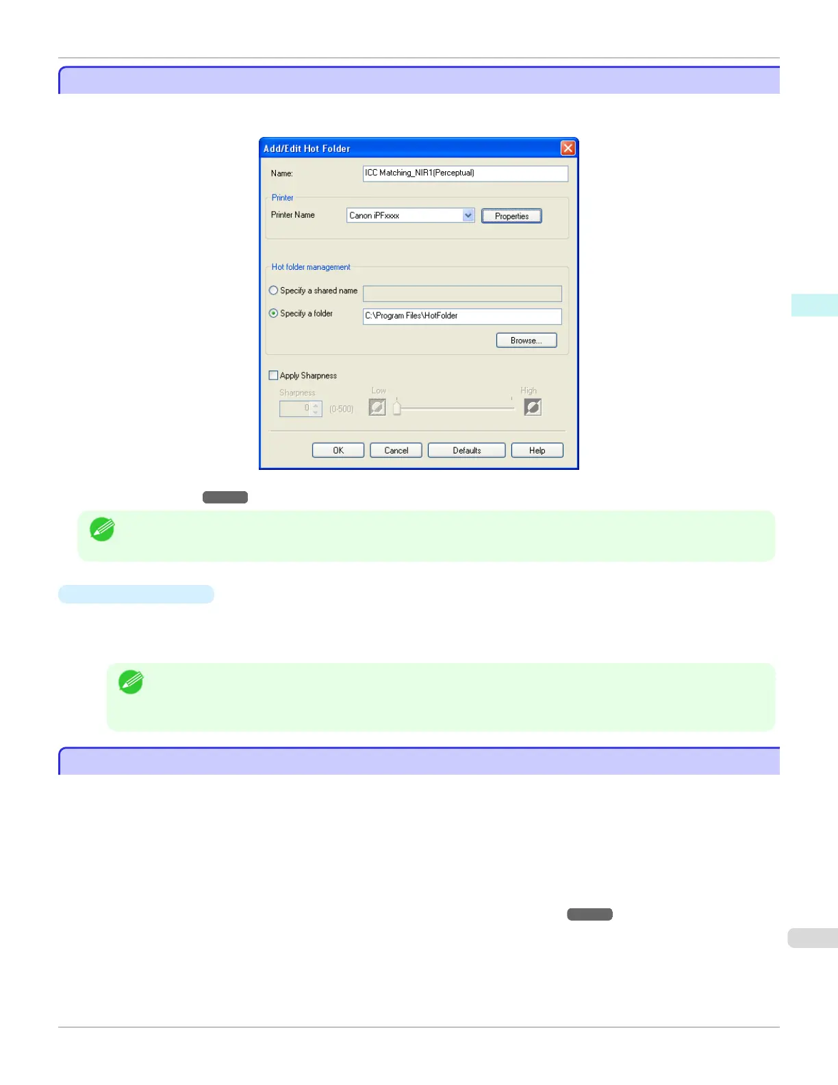 The printer driver opens when you click the Properties button in the Add/Edit Hot Folder dialog box. The printer driv-
